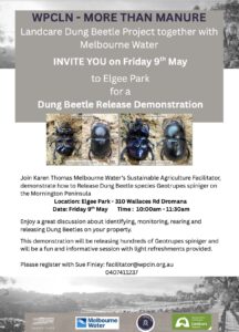 « All Events This event has passed. Dung Beetle Release 9 May @ 10:00 am - 11:30 am Free « Hooded Plover End of Season Celebration with guest speaker Sean “The Birdman” Doolie Working Bee in Greens Bush » Add to calendar Google Calendar iCalendar Outlook 365 Outlook Live Details Date: 9 May Time: 10:00 am - 11:30 am Cost: Free Event Category: Mornington Peninsula Equine Landcare Group Venue 310 Wallaces Road 310 Wallaces Road Dromana, Vic Australia + Google Map